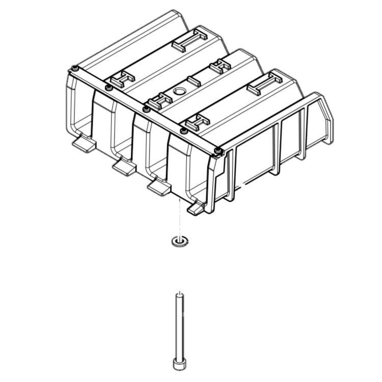 Het losdraaien van de drie moeren op figuur 2 creëert extra ruimte om het geleidingsprofiel te verplaatsen. Dit maakt de installatie van een geleidingsprofiel eenvoudiger.