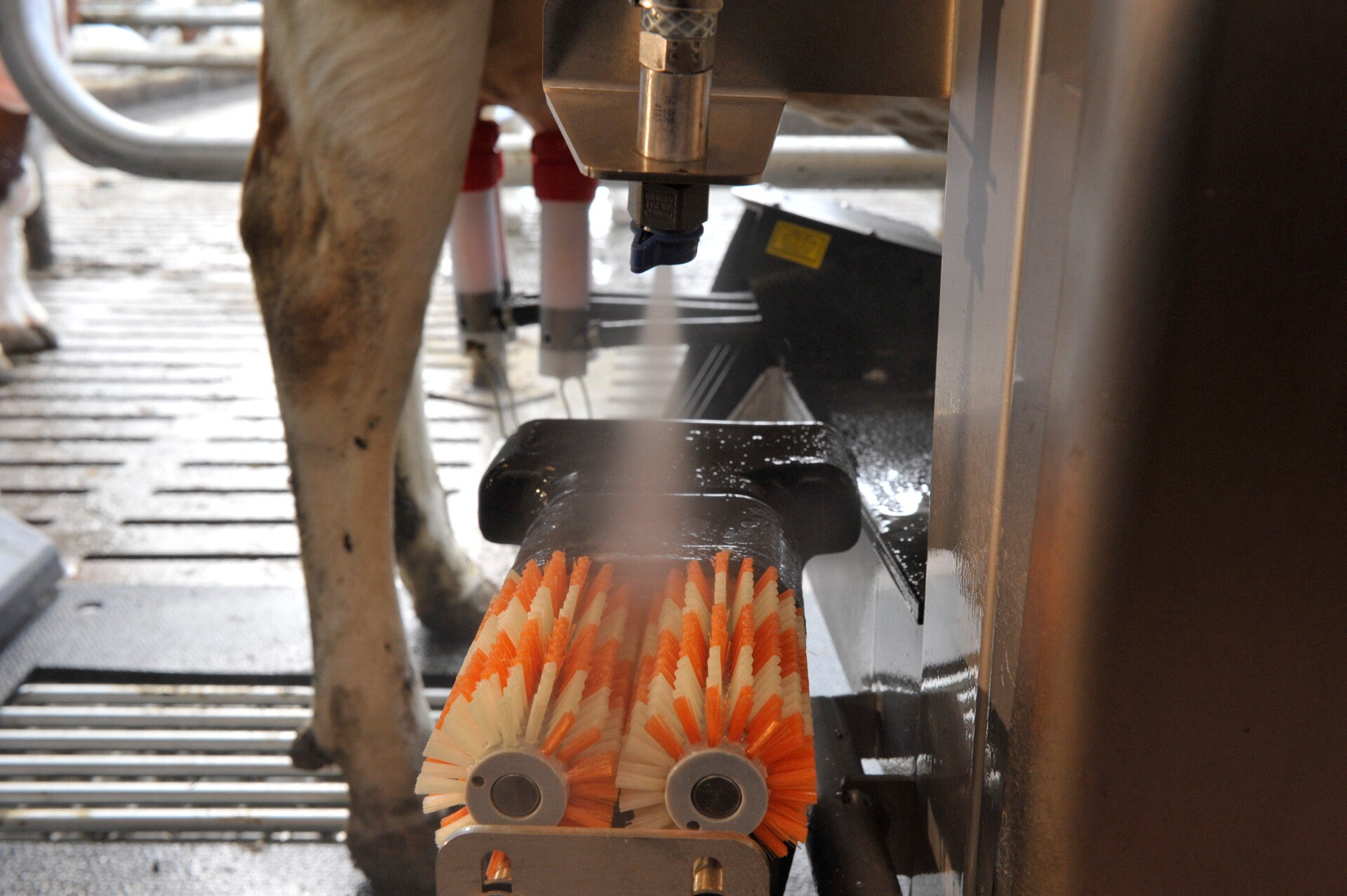 Ten tweede stimuleren ze de spenen voor het melken. Dit verbetert de melksnelheid en de totale aansluittijd van de bekers. Advies is om de borstels bij 30.000 melkingen te vervangen. Als ze te versleten zijn wordt de reiniging en stimulatie minder.