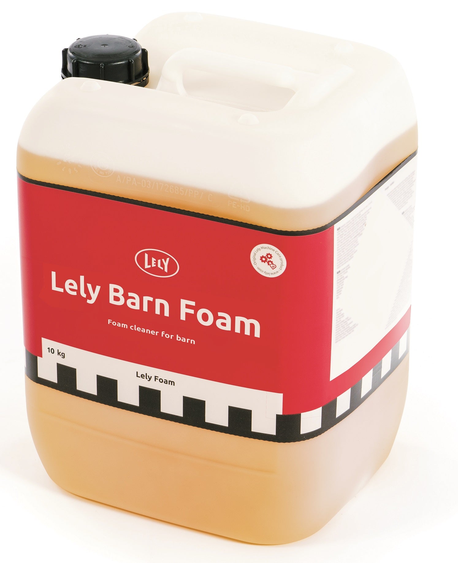 Lely Barn Foam is een schuimend, sterk zuur reinigingsmiddel. Het belangrijkste ingrediënt is methaansulfonzuur dat ongeëvenaarde kalkverwijdering biedt. Het product is niet alleen fosfaatvrij maar ook zeer laag in stikstof. Het zorgt voor een beter schuimgedrag en dus een optimale hygiëne. Het verwijdert minerale afzettingen, zoals kalksteen, ijzer, melksteen en urine in de stal, melkruimte, robotgebied en melkstal. Dit product kan gebruikt worden in de Lely Foam Unit en andere lagedruk (schuim)systemen. Gebruiksaanwijzing: Concentratie: 1 tot 10%. Contacttijd: 5 tot 15 minuten. Oppervlakte vochtig houden, goed naspoelen met water.