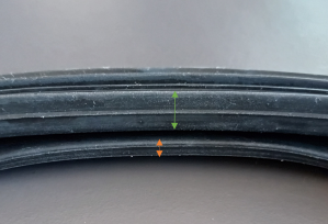 Voor de installatie is het belangrijk om rekening te houden met de boven- en onderkant (zie figuur 2). Het dikke bovenste gedeelte moet aan de bovenkant van het filter worden geplaatst en het dunne onderste gedeelte aan de onderkant van het filter.