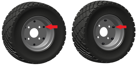 Binnenkant (links, zeskantige boutkoppen) en buitenkant (rechts, dopmoeren) van de 3K-wielen.