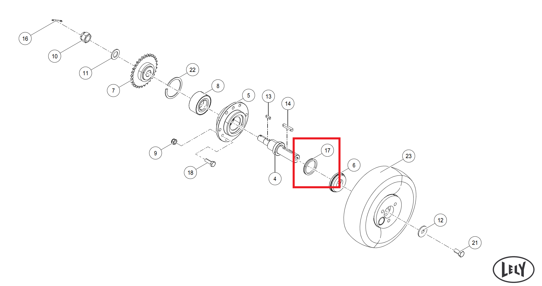 Afdichting tussen wiel en lagers, 1 per as benodigd.