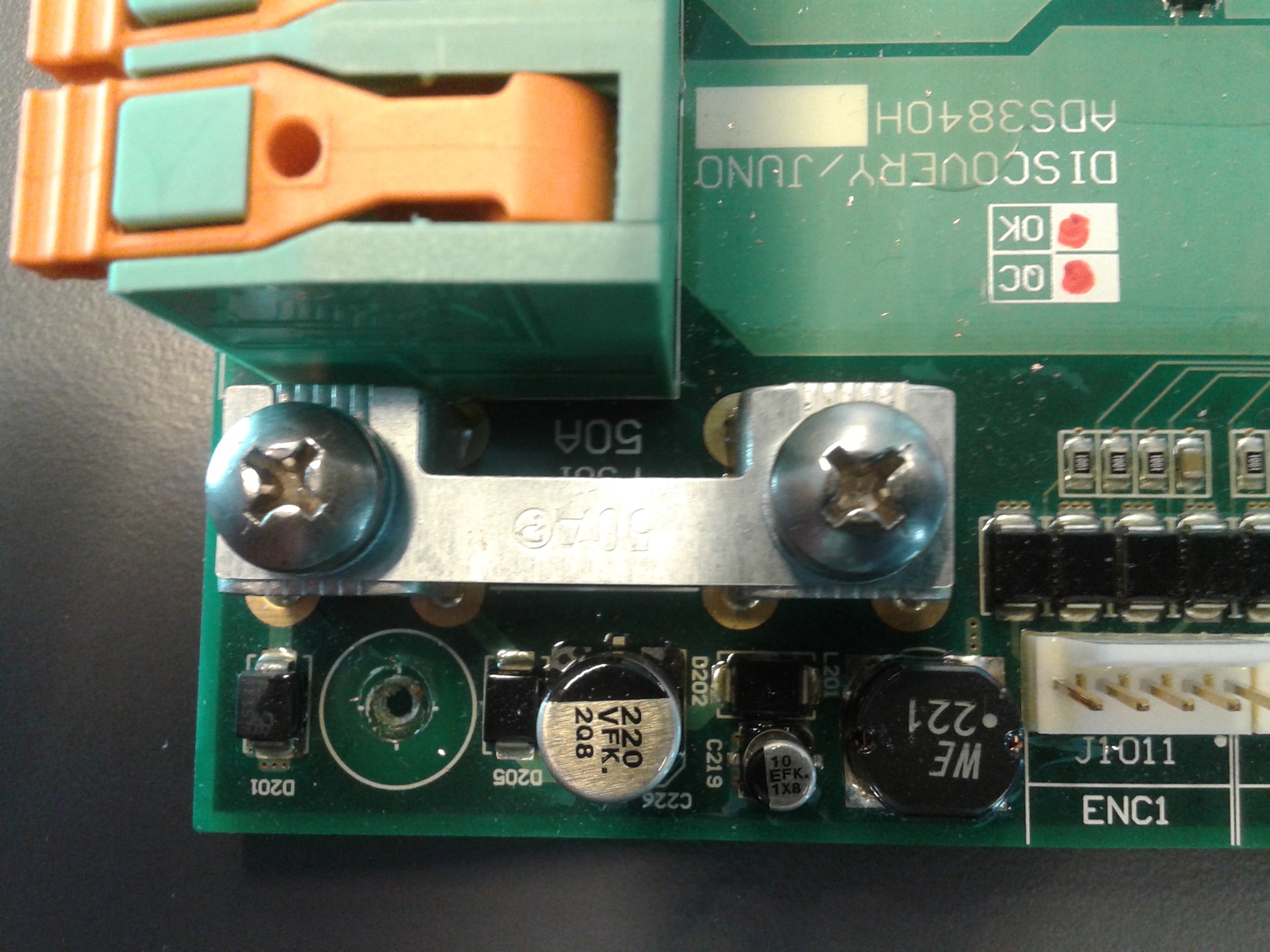 Zekering 50A die zich op de ADS3840 printplaat bevindt.