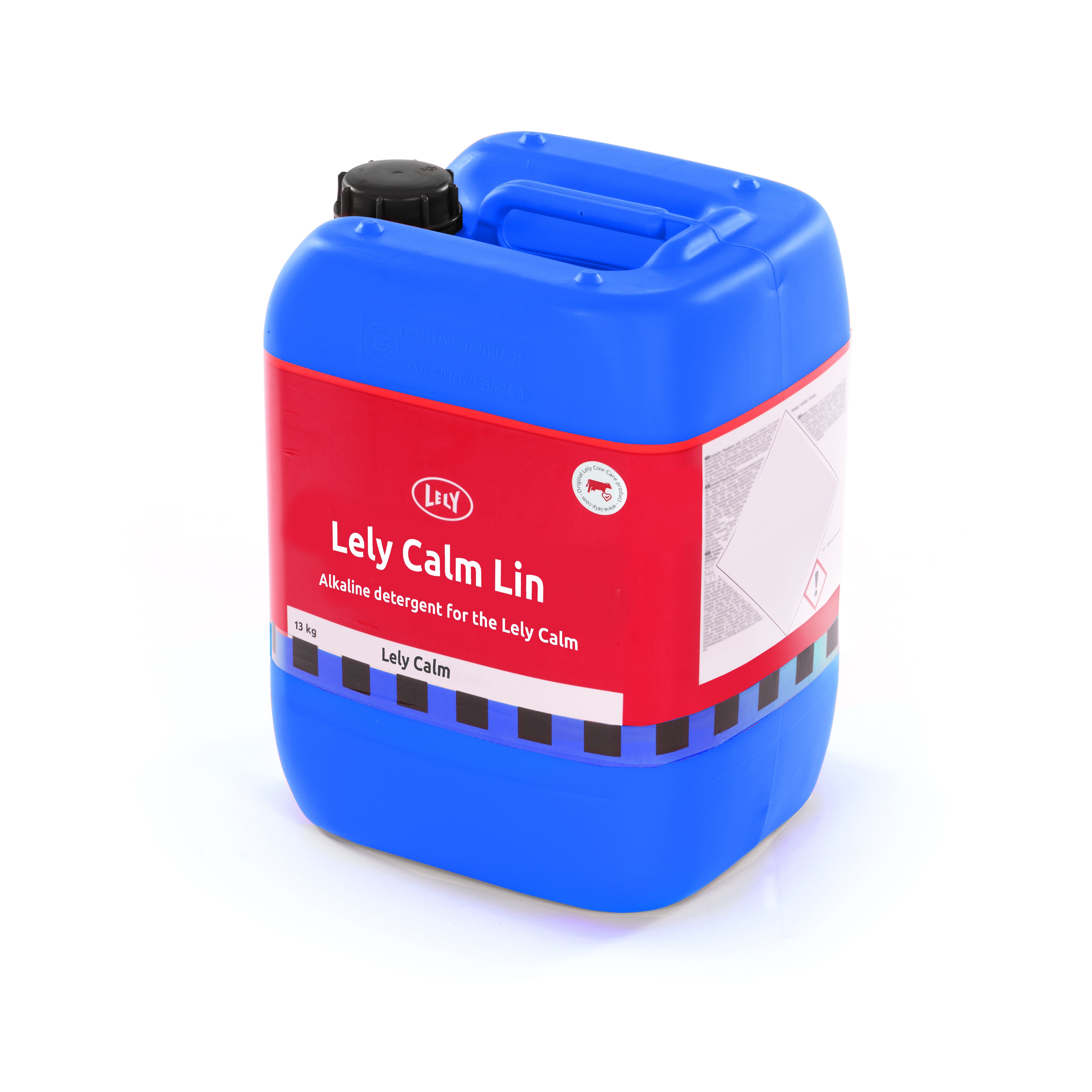 Lely Calm Lin is een alkalisch reinigingsmiddel dat veilig is voor de materialen in de Lely Calm. Waterkwaliteit en met name waterhardheid kunnen storende factoren zijn voor reiniging. Lely raadt aan leidingwater met een bewezen kwaliteit te gebruiken voor verwerken en reinigen.
