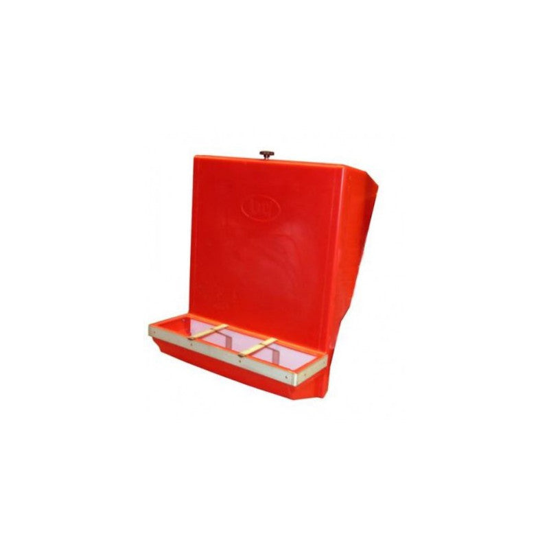 Maatvoering: hoogte 75 cm, breedte 60 cm, diepte 30 cm. De krachtvoerbak heeft een capaciteit van 40 kg voer. Ieder bak heeft 3 vreetplaatsen ter beschikking.