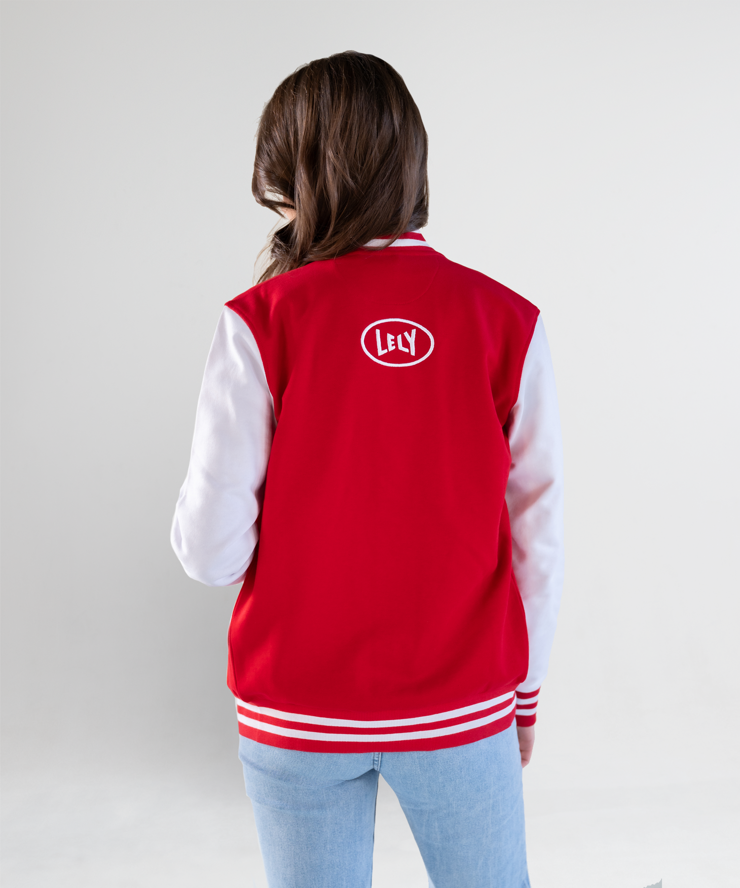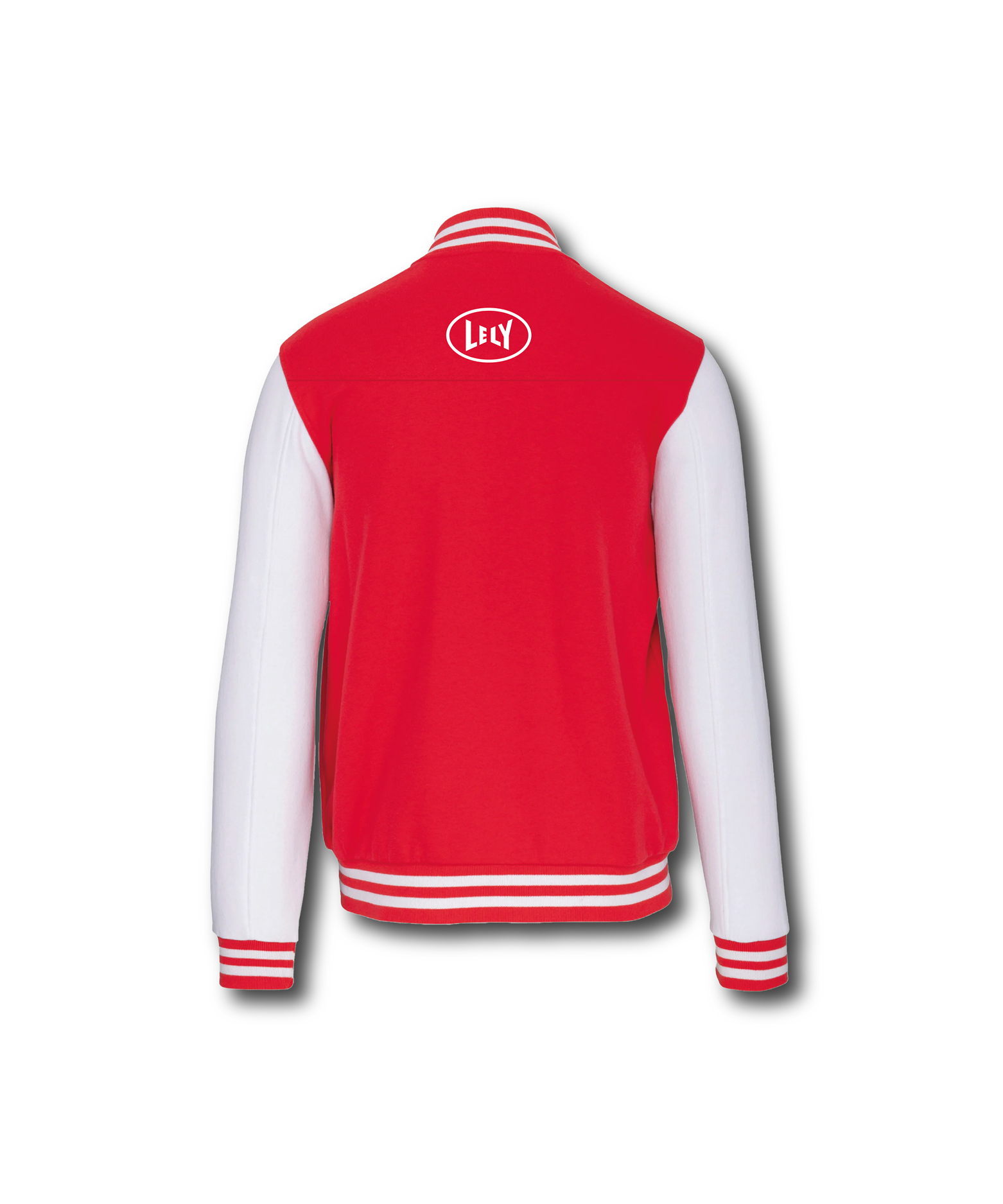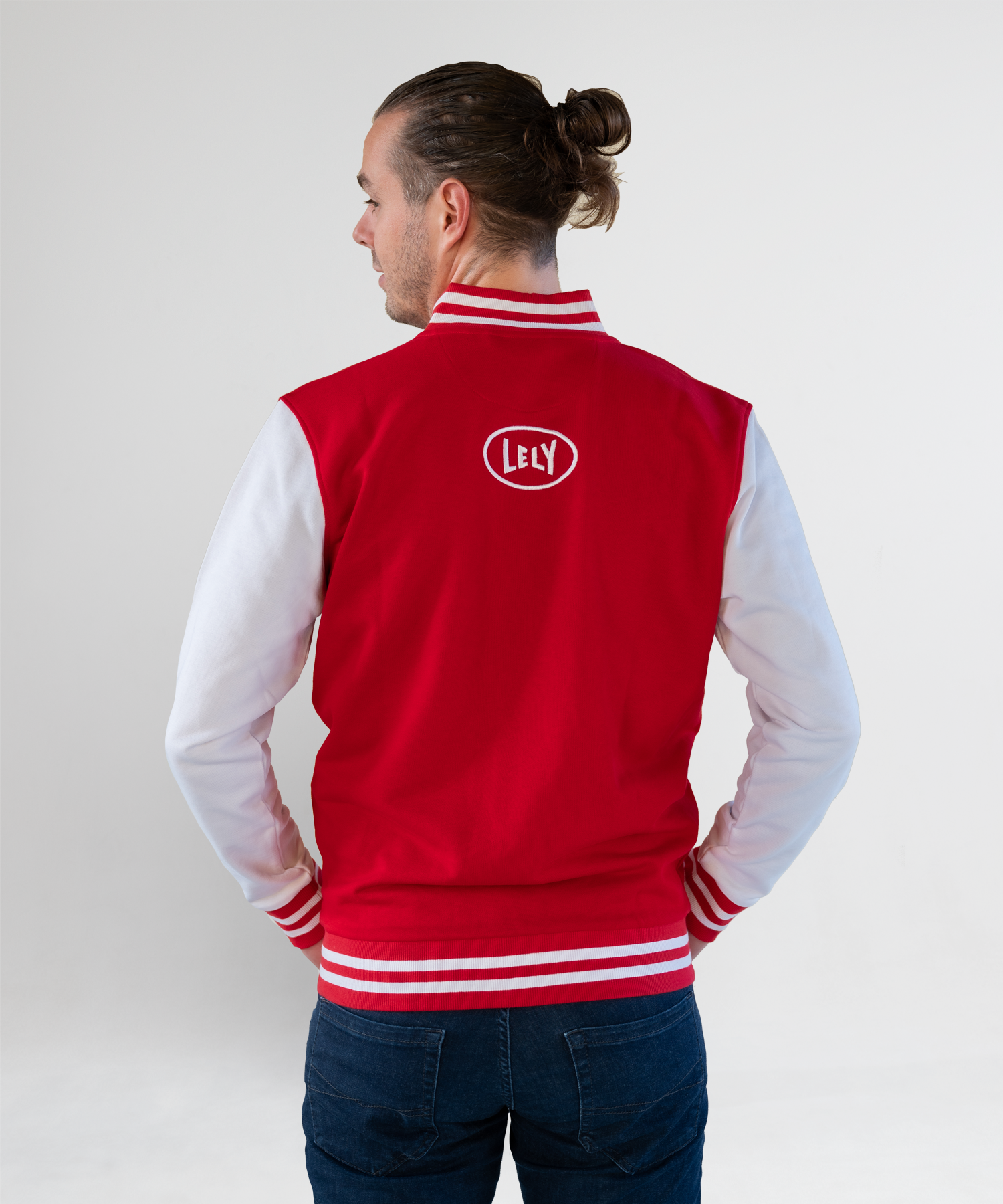 De drukknopen en zakken hebben een witte contrastkleur en het logo van Lely is zowel op de voor- als achterzijde in een borduring terug te vinden.