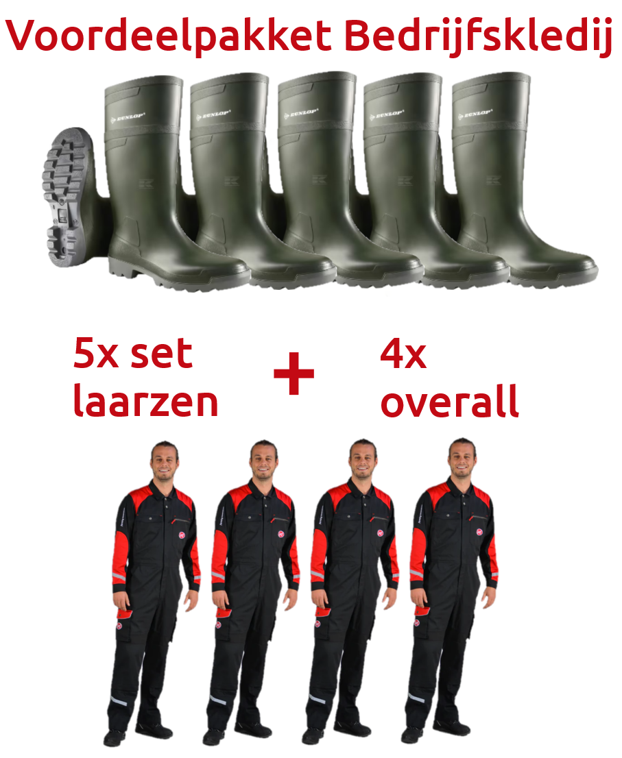 - Bedrijfspakket (5 sets laarzen + 4 overalls)