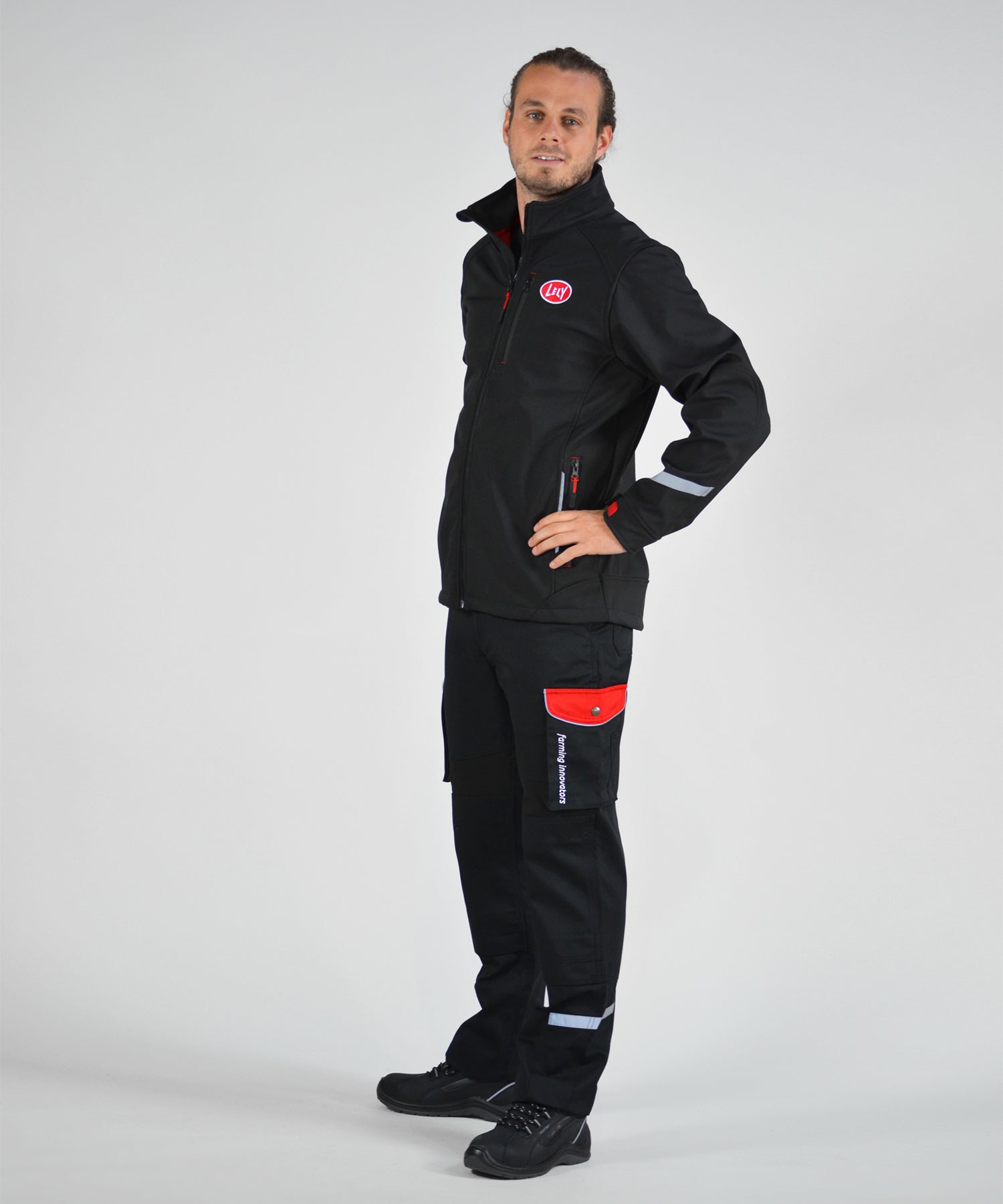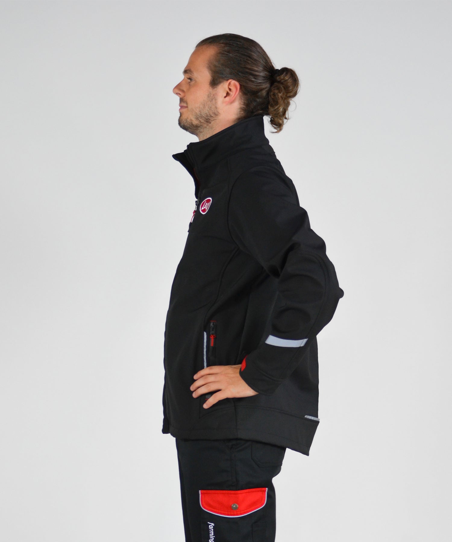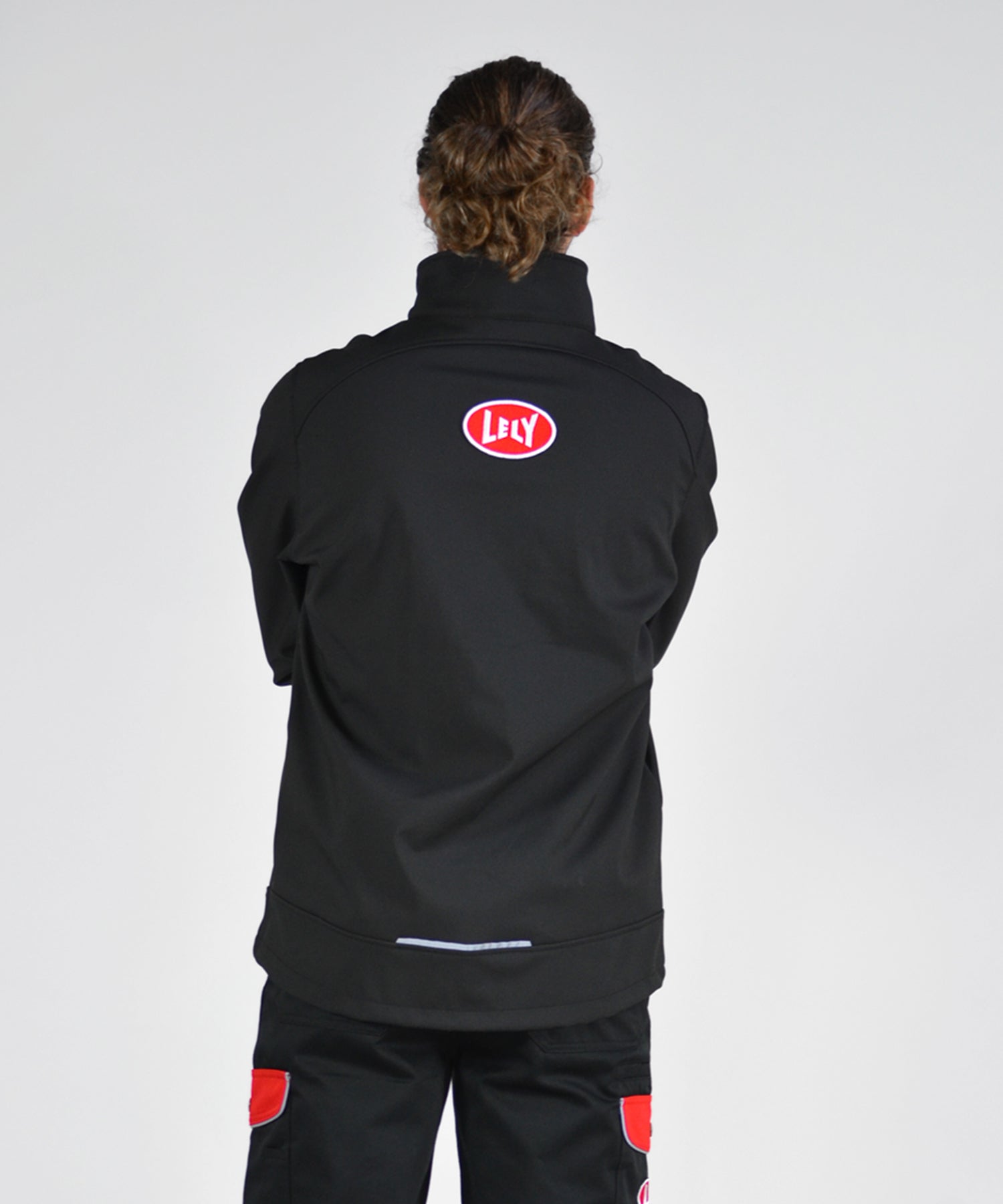 Deze duurzame softshell jas is gemaakt van 100% recyclede polyester. De zwarte buitenkant van de jas is winddicht en waterafstotend en de rode binnenkant is van een comfortabele zachte fleece gemaakt. De jas heeft 3 afsluitbare zakken. Er zit een Lely logo op de borst en de rug en de slogan 'farming innovators' staat op de mouw. Reflectie biezen zorgen voor extra zichtbaarheid in het donker of bij slecht weer.