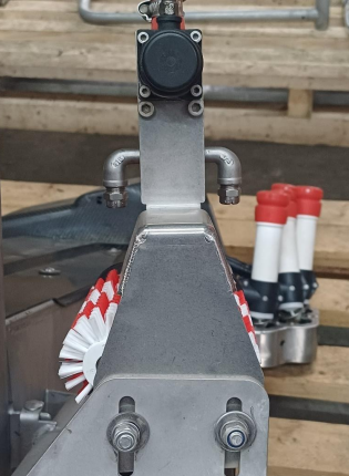 De sproeier is doorontwikkeld en sproeit nu in de breedte van de borstels. Hierdoor gaat er minder verloren aan de reiniging van de borstels en komt er maximaal middel op de borstels.